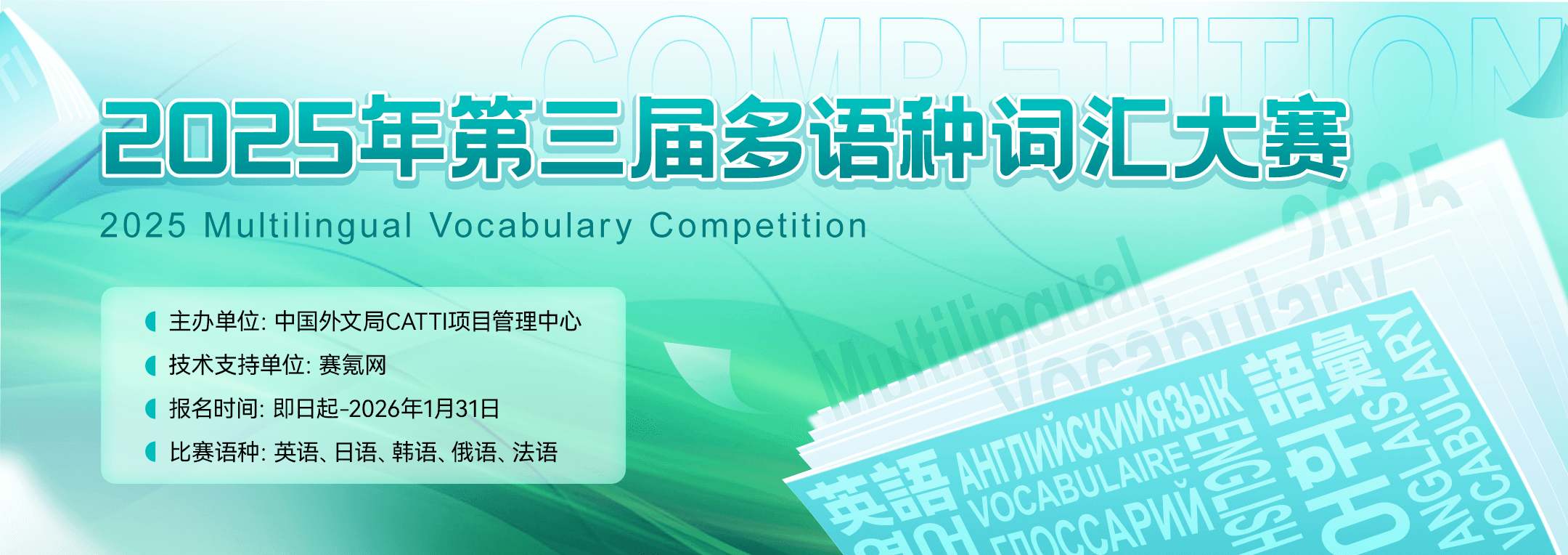 2025-11-13为激发外语学习的兴趣,通过赛事选拔更多优秀人才,全面提升外语学习者的词汇能力和素养,培养和发现优秀的语言应用人才,向世界阐释推介更多具有中国特色、体现中国精神、蕴藏中国智慧的优秀文化,由CATTI中心组织的2025年多语种词汇大赛于10月28日正式启动。现将大赛报名有关工作通知如下: 一、赛事