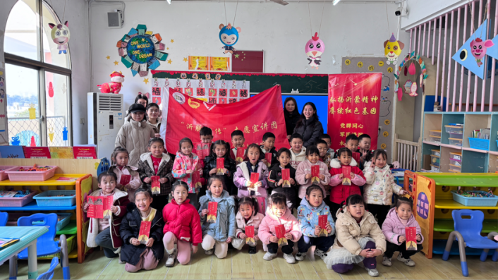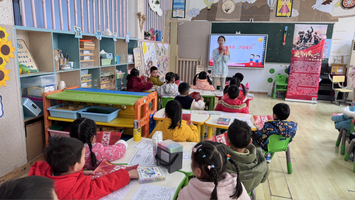 2024年12月18日,宣讲团走进华东交通大学附属幼儿园,为大(1)班、大(2)班50名幼儿开展了“沂蒙精神润童心 红色传承共成长”主题活动。宣讲团成员带领幼儿通过PPT、视频、讲故事等形式帮助幼儿了解沂蒙精神。课堂上,孩子们将自己对沂蒙精神的感受转化为一张张红色手抄报,表达对祖国的热爱和对革命英雄的敬意。