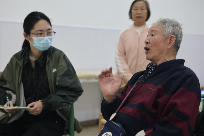 交流互动区里,团队成员们摒弃刻意的访谈模式,以“拉家常”为切入点,在老人身旁,从日常饮食、社区趣事聊起,逐步走进老人的人生岁月。在轻松温馨的氛围中,老人们打开心扉,纷纷分享亲身经历:有老人回忆起上世纪90年代参与社区老旧小区改造时,顶着烈日协调施工、挨家挨户征求意见的日夜,坦言“当时就想着让大家住得更舒服,再苦再累也值”;有老人细数从“泥泞小路”到“柏油大道”、从“杂货小摊”到“商圈林立”的区域变迁,讲述自己见证云涛社区从荒芜到繁华的全过程,眼中满是感慨;还有老党员结合自身经历,讲述参与基层治理、践行初心使命的点滴,从“枫桥经验”的早期实践到社区志愿服务的坚守,每一句话都饱含对这片土地的热爱。