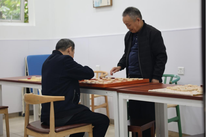 我们安静站在一旁陪伴观赛,轻轻驻足、默默守护,为老人们营造专注、舒心、不受干扰的娱乐氛围。大家用眼神与微笑传递善意,用安静的陪伴表达敬意,不打断老人思路、不破坏现场节奏,让老人们能够全身心沉浸在自己喜爱的文娱活动中。
